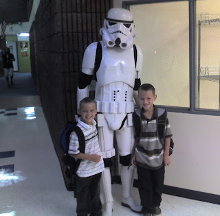 I know that the boys started school August 12th, but I never posted this pic because it was on John's phone, so here it is. They were so excited to start school, and both are doing well.